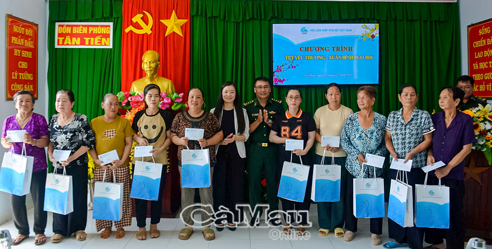 Báo Cà Mau Trong khuôn khổ Chương trình “Tết yêu thương - Xuân Bính Ngọ 2026”, ngày 25/12, Đoàn công tác do bà Nguyễn Thị Thu Hiền, Phó Chủ tịch Hội Liên hiệp Phụ nữ (LHPN) Việt Nam, làm Trưởng đoàn đã đến thăm và tặng quà tại Đồn Biên phòng Tân Tiến (xã Tân Tiến).