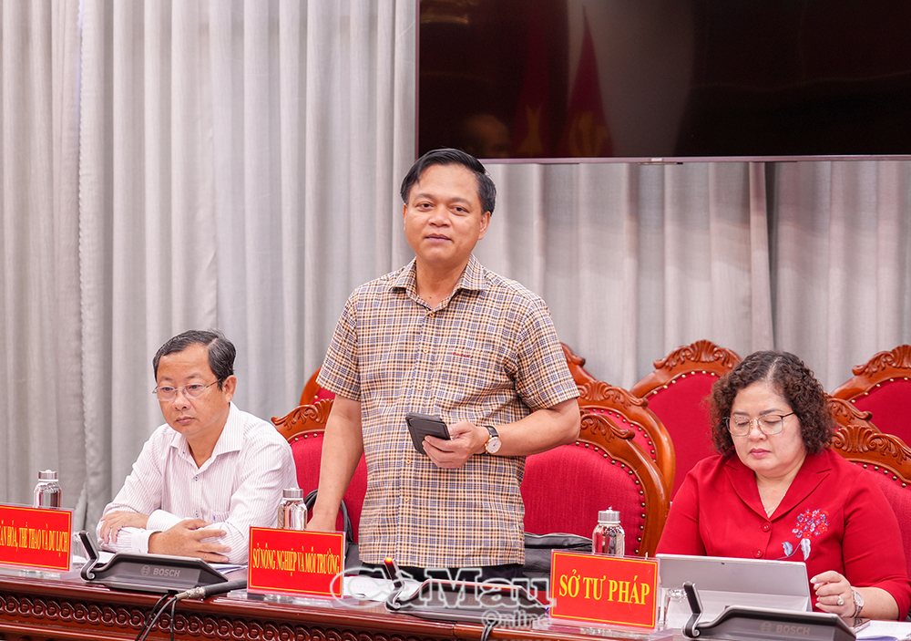 Giám đốc Sở Nông nghiệp và Môi trường Tô Hoài Phương phát biểu thảo luận tại cuộc họp.