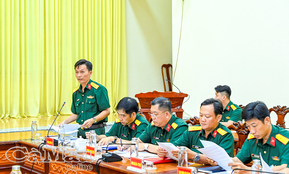 Đại tá Lê Quang Luật, Phó Chính uỷ Bộ CHQS tỉnh, chủ trì hội nghị.