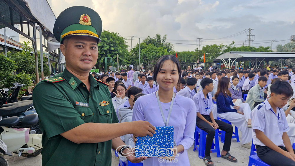 Dịp này, Đồn Biên phòng Gành Hào trao 2 suất học bổng “Nâng bước em tới trường”, mỗi suất trị giá 1,5 triệu đồng, tạo điều kiện cho học sinh có hoàn cảnh khó khăn phấn đấu học tập tốt.