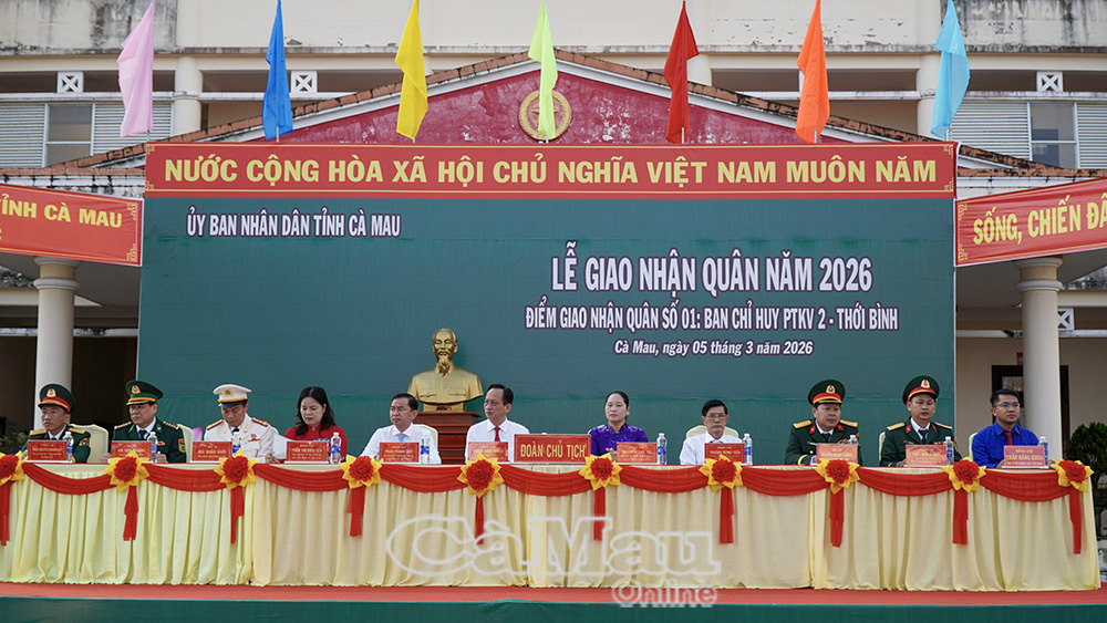 Năm 2026, tỉnh Cà Mau triển khai công tác tuyển chọn và gọi công dân nhập ngũ chặt chẽ, bảo đảm dân chủ, công khai, đúng quy định pháp luật, hoàn thành 100% chỉ tiêu được giao với hơn 2.300 tân binh lên đường làm nghĩa vụ thiêng liêng bảo vệ Tổ quốc./.