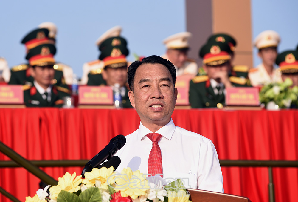 Phát biểu tại buổi lễ, đồng chí Lữ Quang Ngời, Phó Bí thư Tỉnh uỷ, Chủ tịch UBND tỉnh, Chủ tịch Hội đồng Nghĩa vụ quân sự tỉnh, khẳng định: Cà Mau là mảnh đất giàu truyền thống cách mạng, nơi đã sản sinh và nuôi dưỡng nhiều thế hệ con em ưu tú sẵn sàng hy sinh vì độc lập, tự do của dân tộc, vì hạnh phúc của Nhân dân. Vì vậy, việc thanh niên được tuyển chọn lên đường nhập ngũ không chỉ là trách nhiệm, nghĩa vụ mà còn là niềm tự hào tiếp bước của thế hệ trẻ hôm nay. Tỉnh uỷ, chính quyền và Nhân dân tỉnh biểu dương tinh thần xung kích, tình nguyện, sẵn sàng lên đường nhập ngũ của các tân binh.