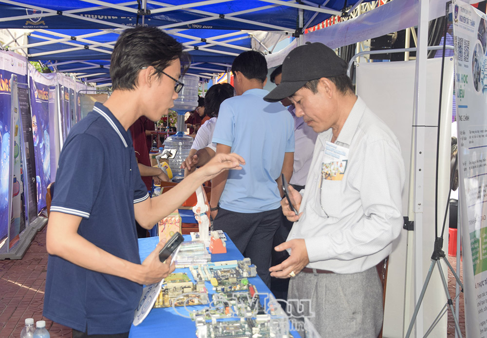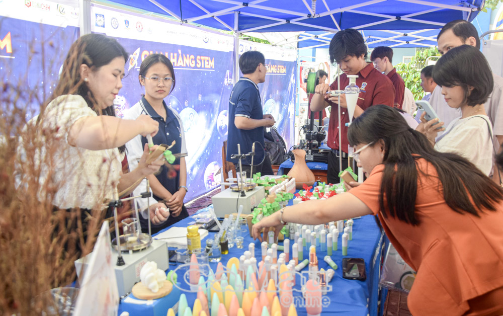 Ngay từ những phút đầu, không gian ngày hội đã trở nên nhộn nhịp với hệ thống gian hàng trưng bày mô hình khoa học, thiết bị thông minh do chính sinh viên thiết kế và chế tạo. Bên cạnh 30 gian hàng đến từ Trường Đại học Nguyễn Tất Thành, còn có sự tham gia của cán bộ quản lý, giáo viên và học sinh tất cả các trường THPT trong tỉnh, trong đó 17 trường đăng ký mang sản phẩm STEM của đơn vị mình đến giới thiệu.