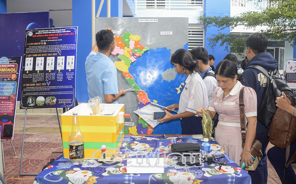 Nhiều sản phẩm nổi bật thu hút sự chú ý như buzz wire, máy in 3D, gian hàng hoá dược - mỹ phẩm, mô hình STEM sóng dừng... Qua các sản phẩm, học sinh thể hiện sự tự tin, tư duy logic và khả năng ứng dụng kiến thức đã học vào thực tiễn.