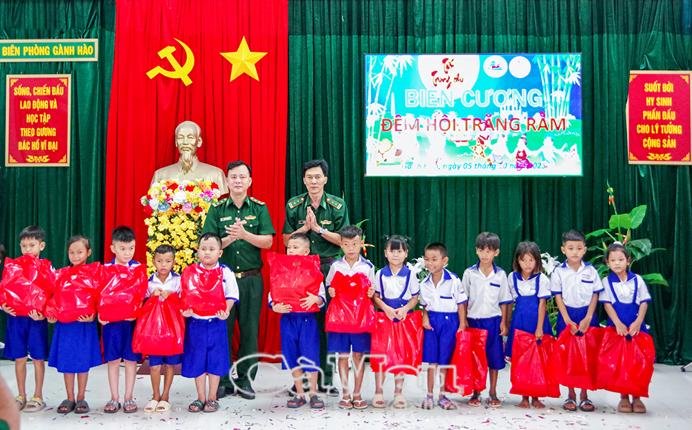 Trước đó, các đồn Biên phòng trong tỉnh đồng loạt tổ chức chương trình vui Trung thu và trao tặng hơn 3.000 phần quà, tổng trị giá hơn 500 triệu đồng, cho học sinh có hoàn cảnh khó khăn trên địa bàn. Những phần quà nhỏ nhưng ấm áp nghĩa tình đã mang đến cho các em vùng biên giới Cà Mau một mùa Trung thu trọn vẹn và hạnh phúc.