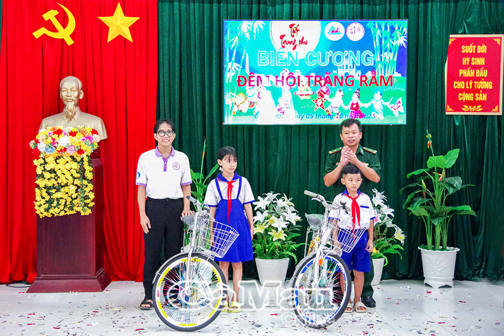 Ngoài nhận quà Trung thu, các em có hoàn cảnh đặc biệt khó khăn được các đơn vị vận động các nhà hảo tâm tặng xe đạp.