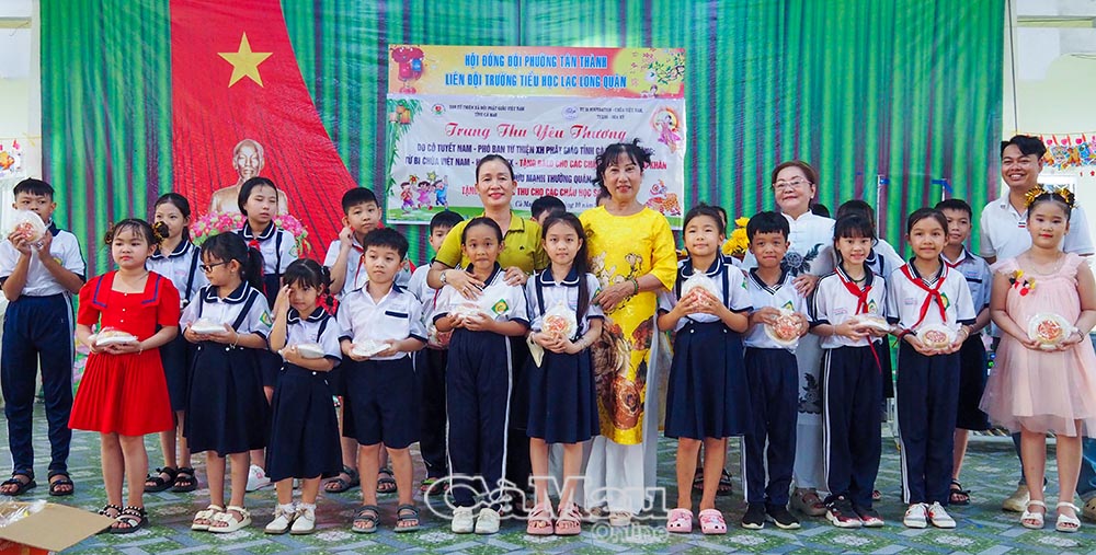 * Chiều 6/10, Ban Từ thiện Xã hội Phật giáo Việt Nam tỉnh Cà Mau phối hợp với Trường Tiểu học Lạc Long Quân (phường Tân Thành) tổ chức chương trình “Trung thu yêu thương” dành cho 659 học sinh nhà trường.