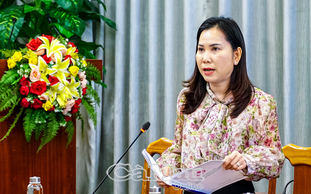 Chủ tịch Hội LHPN tỉnh Cà Mau Lê Thị Ngọc Linh thông tin về hoat động giám sát nguồn vốn uỷ thác của hội.