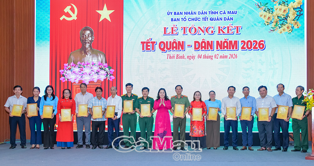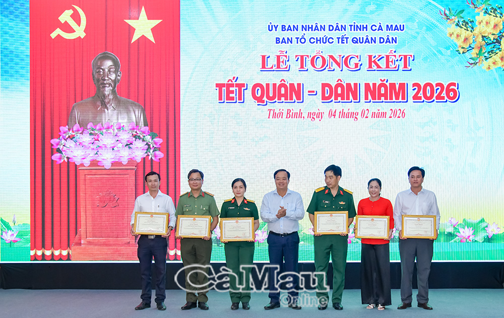 Báo Cà Mau Chiều 4/2, Chương trình Tết quân - dân năm 2026 tại xã Thới Bình chính thức bế mạc sau hơn 7 ngày tổ chức, đạt nhiều kết quả nổi bật.