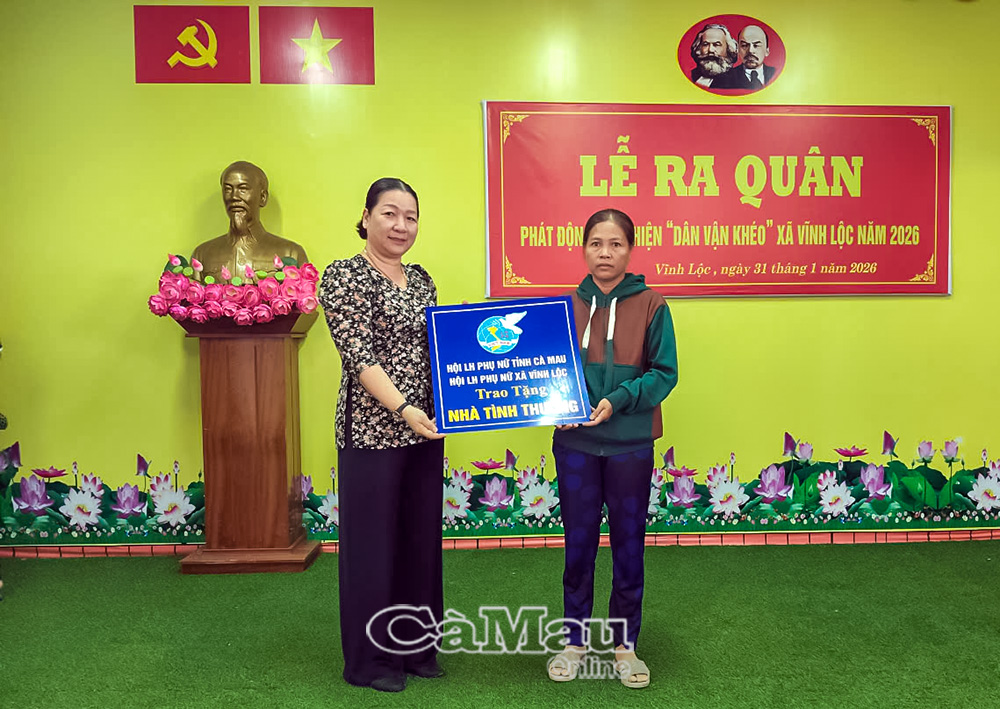 Chào mừng thành công của Đại hội Đại biểu toàn quốc lần thứ XIV của Đảng và 96 năm Ngày thành lập Đảng Cộng sản Việt Nam (3/2/1930-3/2/2026), sáng 29/1, Hội Liên hiệp Phụ nữ (LHPN) tỉnh Cà Mau phối hợp với Hội LHPN phường An Xuyên bàn giao nhà “Mái ấm tình thương” cho hội viên phụ nữ có hoàn cảnh khó khăn trên địa bàn.