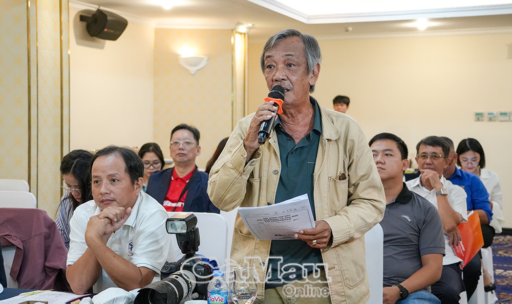 Nhà báo Dư Hải (Báo và Phát thanh, Truyền hình Bình Phước) có ý kiến phát biểu tại buổi họp báo.