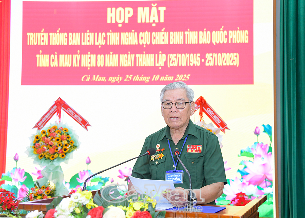Báo Cà Mau Sáng 25/10, tại Hội trường Bộ Chỉ huy Quân sự (CHQS) tỉnh, Ban Liên lạc tình nghĩa Cựu chiến binh Tình báo quốc phòng tỉnh Cà Mau tổ chức họp mặt kỷ niệm 80 năm Ngày thành lập lực lượng Tình báo quốc phòng (25/10/1945-25/10/2025).