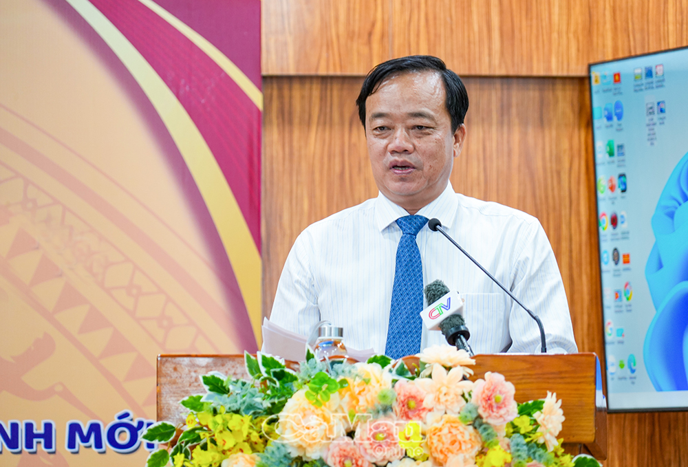 Đồng chí Huỳnh Quốc Việt, Phó Bí thư Thường trực Tỉnh uỷ, Chủ tịch Uỷ ban MTTQ Việt Nam tỉnh Cà Mau, phát biểu tại buổi họp mặt.