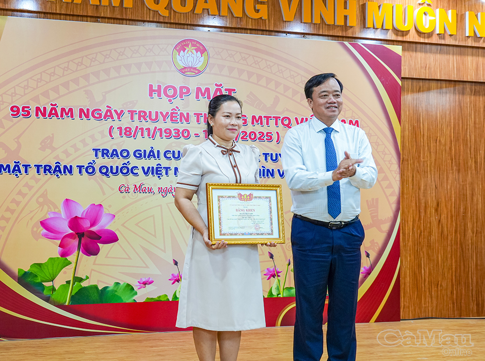Chiều 17/11, Ban Thường trực Uỷ ban MTTQ Việt Nam tỉnh Cà Mau long trọng tổ chức Họp mặt kỷ niệm 95 năm Ngày truyền thống MTTQ Việt Nam (18/11/1930-18/11/2025) và tổng kết, trao giải Cuộc thi trực tuyến “Mặt trận Tổ quốc Việt Nam với tầm nhìn và sứ mệnh mới”.