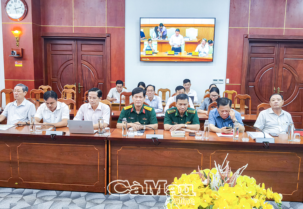 Quang cảnh phiên họp tại điểm cầu UBND tỉnh Cà Mau.