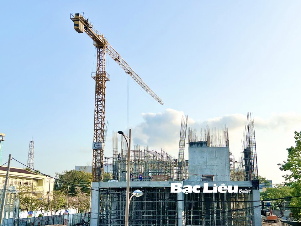 Dự án khách sạn tiêu chuẩn 4 sao đang được Công ty Cổ phần dịch vụ du lịch Công tử Bạc Liêu khẩn trương thi công. Ảnh: H.T
