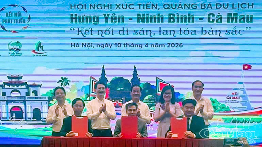 Chiều 10/4, trong khuôn khổ Hội chợ Du lịch Quốc tế VITM Hà Nội 2026, ba tỉnh Hưng Yên - Ninh Bình - Cà Mau đã phối hợp tổ chức hội nghị xúc tiến, quảng bá du lịch chung. Đây là bước đi chiến lược nhằm kết nối, xây dựng chuỗi sản phẩm du lịch đặc sắc, từ chiều sâu văn hoá Bắc Bộ đến nét đẹp vùng địa đầu cực Nam Tổ quốc.