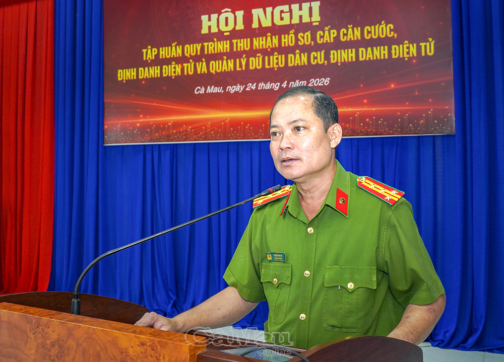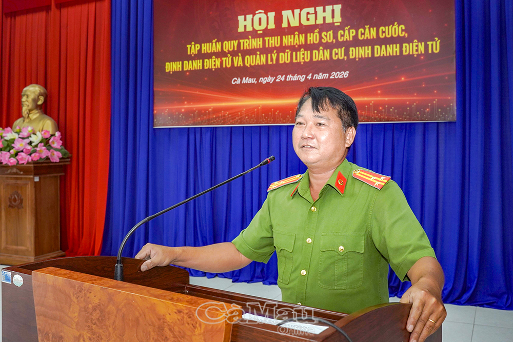 Báo Cà Mau Ngày 24/4, Công an tỉnh Cà Mau tổ chức Hội nghị tập huấn quy trình thu nhận hồ sơ cấp căn cước, định danh điện tử và quản lý dữ liệu dân cư cho công an các xã, phường trên địa bàn tỉnh.