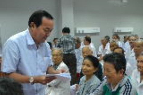 | Phó bí thư Thường trực Tỉnh uỷ Phạm Bạch Đằng trao tặng các phần quà cho mẹ VNAH và cán cán bộ đang điều trị tại bệnh viện Y học Cổ truyền. |