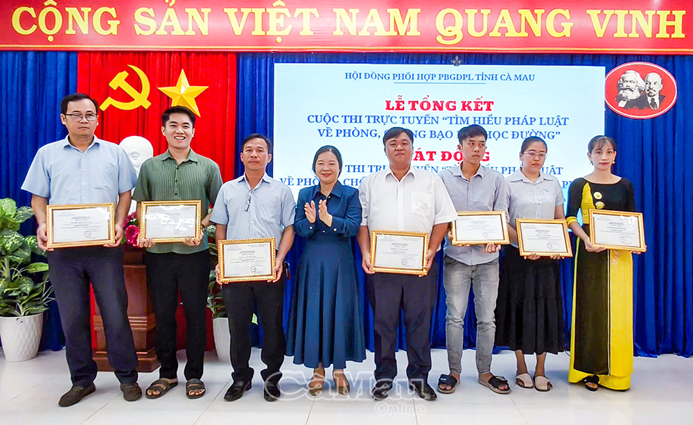 Thực hiện Kế hoạch của Hội đồng phối hợp phổ biến giáo dục pháp luật tỉnh Cà Mau về tổ chức các cuộc thi “Tìm hiểu pháp luật năm 2026”, Cuộc thi trực tuyến “Tìm hiểu pháp luật về bạo lực học đường” diễn ra từ ngày 9-29/3/2026. Căn cứ kết quả chấm điểm tự động, ngày 6/4, Trưởng ban tổ chức ban hành Quyết định số 82/QĐ-BTC công nhận kết quả cuộc thi với 1 giải Nhất, 2 giải Nhì, 2 giải Ba và 15 giải Khuyến khích.