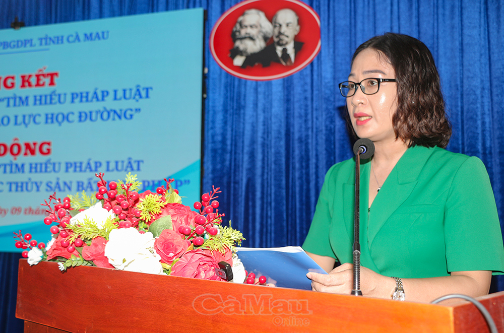 Tại buổi lễ, bà Phạm Thị Ngọc, Phó Giám đốc Sở Tư pháp, phát động Cuộc thi trực tuyến “Tìm hiểu pháp luật về phòng, chống khai thác thuỷ sản bất hợp pháp”.