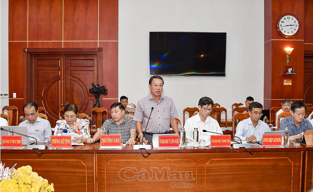 Phó Chủ tịch UBND tỉnh Lê Văn Sử thảo luận, đóng góp ý kiến tại hội nghị.