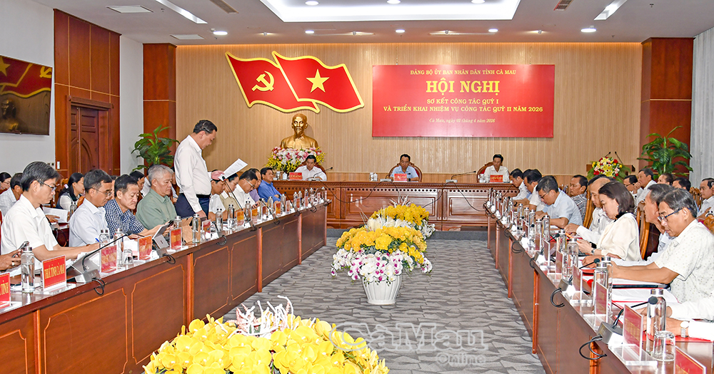 Báo Cà Mau “Đề nghị các cấp uỷ, tổ chức đảng trực thuộc khẩn trương cụ thể hoá thành chương trình, kế hoạch sát với thực tiễn; xác định rõ lộ trình, thời gian, trách nhiệm và tăng cường kiểm tra, đôn đốc. Đồng thời, phát huy tinh thần đoàn kết, chủ động, sáng tạo để hoàn thành thắng lợi nhiệm vụ quý II, tạo nền tảng cho cả năm 2026”, đồng chí Lữ Quang Ngời, Phó Bí thư Tỉnh uỷ, Bí thư Đảng uỷ, Chủ tịch UBND tỉnh Cà Mau, nhấn mạnh tại Hội nghị Ban Chấp hành Đảng bộ UBND tỉnh lần thứ tư, vào chiều 3/4, nhằm sơ kết công tác quý I và triển khai nhiệm vụ công tác quý II/2026.