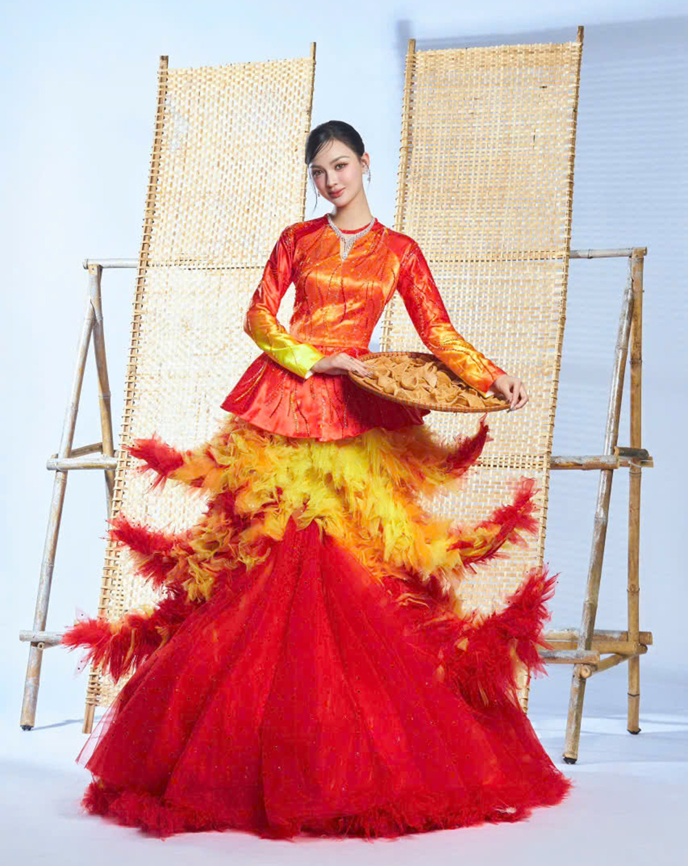 “Em chọn làm trang phục văn hoá vì em sợ rằng, nếu người trẻ không sáng tạo, không kể lại câu chuyện của quê mình theo cách riêng, thì những điều bình dị đó sẽ dần bị lãng quên”, Hoàng Bảo chia sẻ.