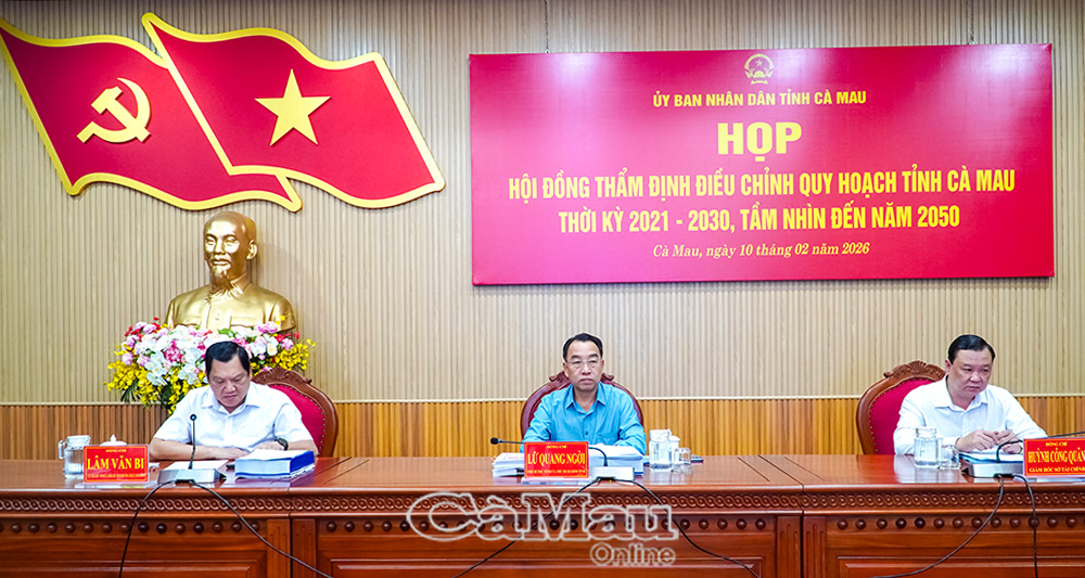 Báo Cà Mau Đó là ý kiến chỉ đạo của đồng chí Lữ Quang Ngời, Phó Bí thư Tỉnh uỷ, Chủ tịch UBND tỉnh Cà Mau, tại phiên họp trực tiếp và trực tuyến của Hội đồng thẩm định điều chỉnh Quy hoạch tỉnh Cà Mau thời kỳ 2021-2030, tầm nhìn đến năm 2050, diễn ra chiều 10/2.
