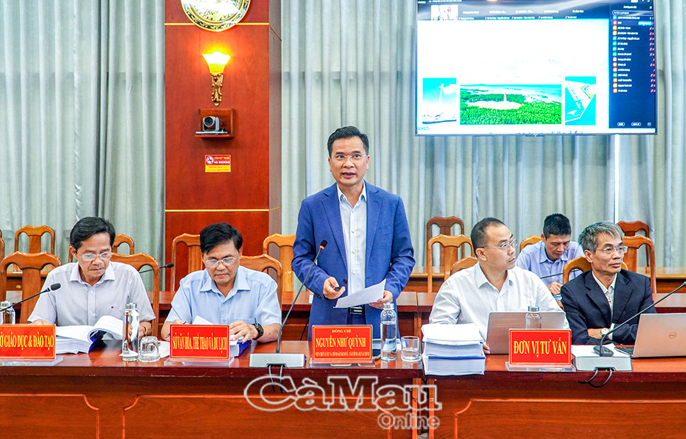 Ông Nguyễn Như Quỳnh, Viện Chiến lược và Chính sách kinh tế - tài chính (Bộ Tài chính), trình bày báo cáo điều chỉnh Quy hoạch tỉnh Cà Mau.