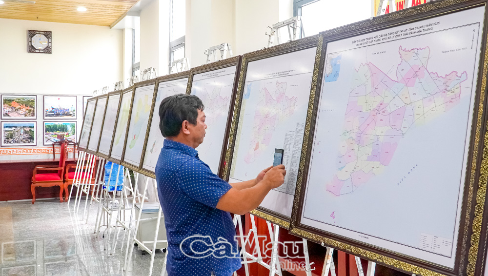 Bản đồ quy hoạch tỉnh Cà Mau được trưng bày tại phiên họp để các đại biểu trực tiếp nghiên cứu, tham khảo.