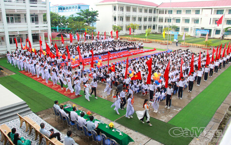 Công tác phát triển đảng viên từ học đường là biện pháp quan trọng trong việc nâng cao số lượng và chất lượng đảng viên (ảnh chụp lễ khai giảng năm học 2024-2025 tại Trường THPT Giá Rai, phường Giá Rai).