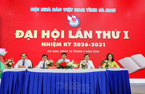 Báo Cà Mau Sáng 28/4, Đại hội Hội Nhà báo Việt Nam tỉnh Cà Mau lần thứ I, nhiệm kỳ 2026-2031 khai mạc và tiến hành phiên trù bị với sự tham dự của 161 đại biểu là hội viên các liên chi hội, chi hội nhà báo trong toàn tỉnh. Đến dự có đồng chí Nguyễn Văn Khởi, Phó Chủ tịch Uỷ ban MTTQ Việt Nam tỉnh Cà Mau.