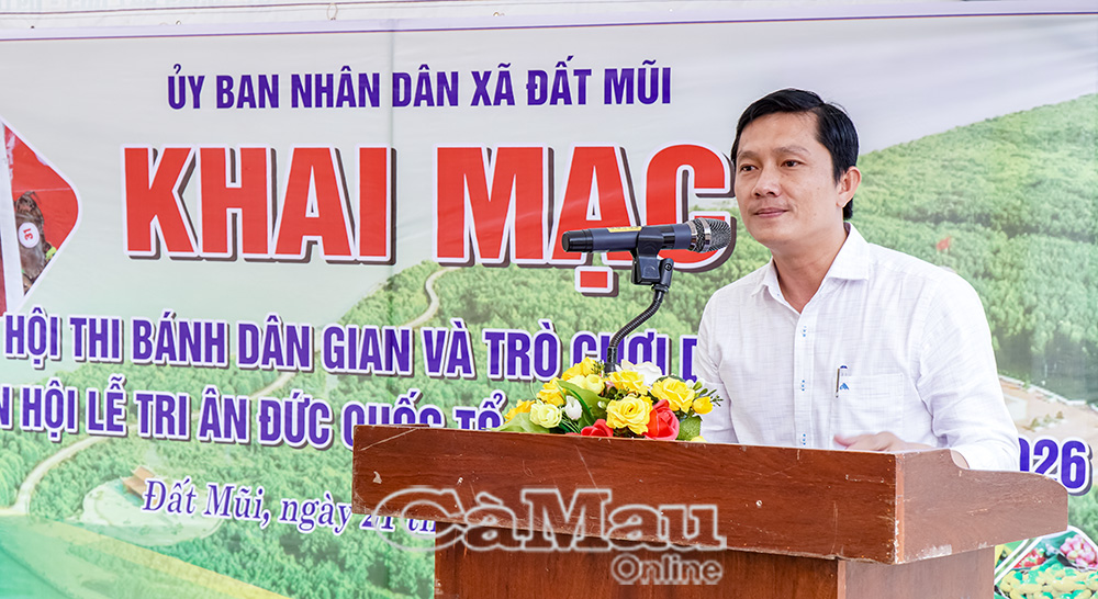 Báo Cà Mau Nằm trong chuỗi hoạt động Lễ tri ân Đức Quốc Tổ Lạc Long Quân năm 2026, sáng 21/4, UBND xã Đất Mũi tổ chức khai mạc Hội thi bánh dân gian và các trò chơi dân gian tại Khu du lịch Mũi Cà Mau.