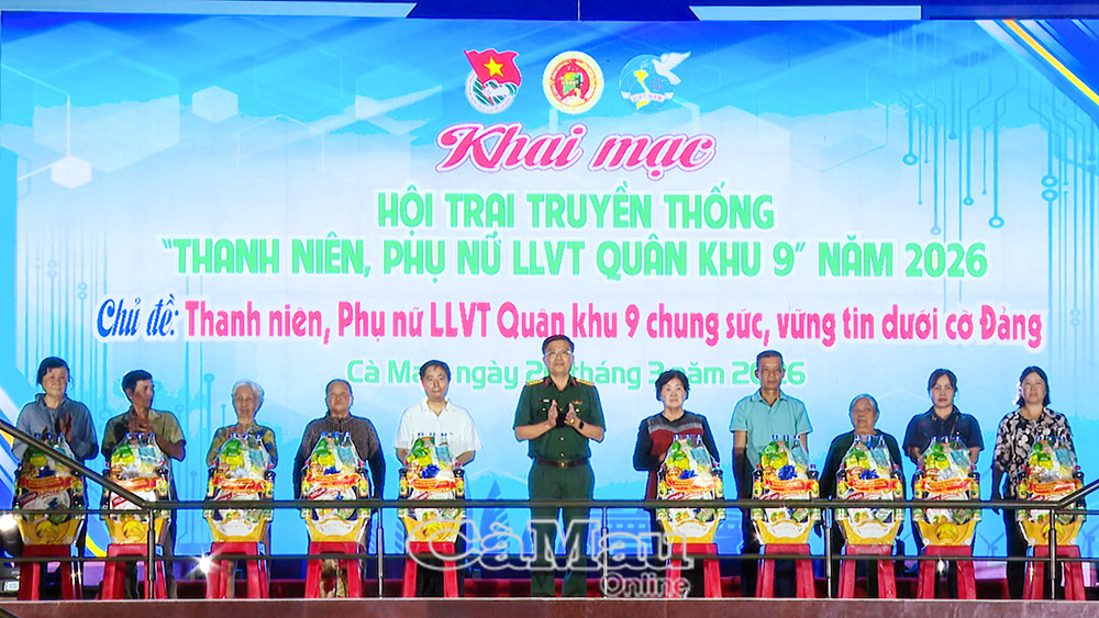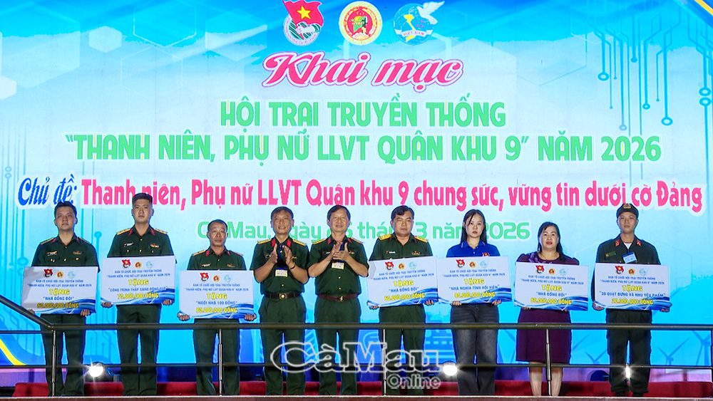 Báo Cà Mau Tối 26/3, tại Ban Chỉ huy Phòng thủ khu vực 1 - Bạc Liêu, tỉnh Cà Mau, Hội trại truyền thống “Thanh niên, phụ nữ lực lượng vũ trang Quân khu 9” năm 2026 do Cục Chính trị Quân khu 9 chủ trì chính thức khai mạc trong không khí sôi nổi, đoàn kết.