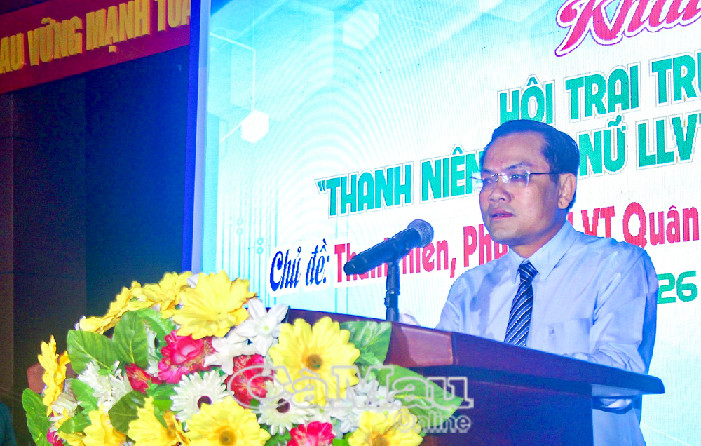 Phát biểu tại lễ khai mạc, đồng chí Ngô Vũ Thăng, Phó Chủ tịch UBND tỉnh Cà Mau, ghi nhận và đánh giá cao ý nghĩa của hội trại, đồng thời nhấn mạnh vai trò xung kích của thanh niên, phụ nữ lực lượng vũ trang trong thực hiện nhiệm vụ phát triển kinh tế - xã hội gắn với củng cố quốc phòng, an ninh tại địa phương.
