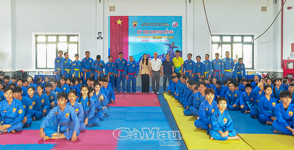 Báo Cà Mau Sáng 28/12, tại Nhà thi đấu Khu liên hợp thể thao tỉnh Cà Mau, Liên đoàn Vovinam tỉnh Cà Mau tổ chức khai mạc kỳ thi thăng cấp Trung đẳng Vovinam tỉnh Cà Mau năm 2025.