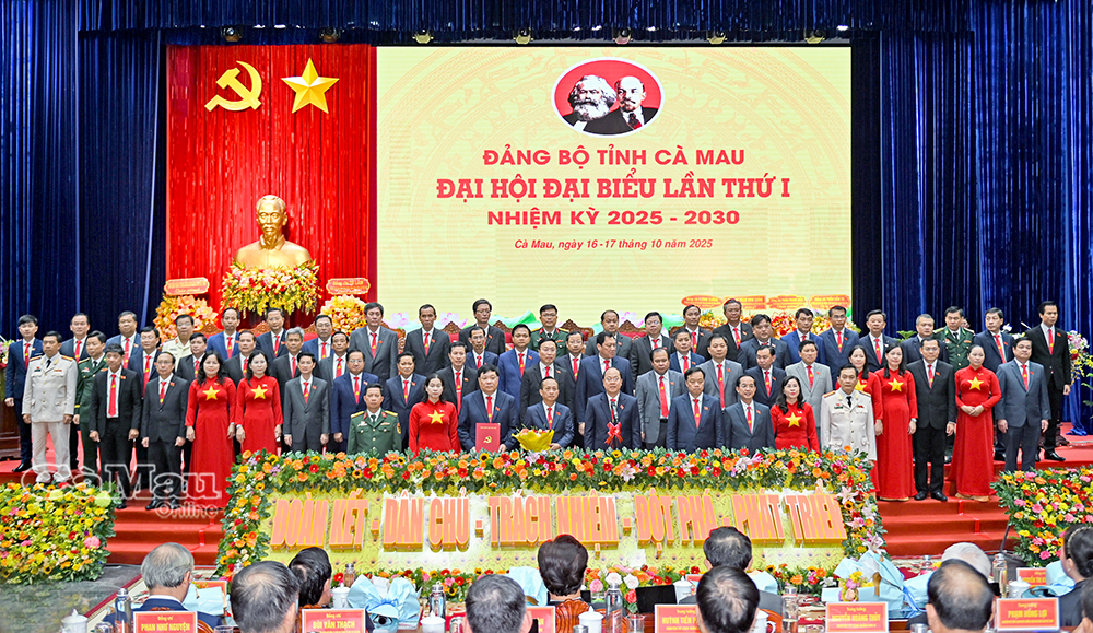 Sáng 17/10, tại Trung tâm Hội nghị tỉnh, Đảng bộ tỉnh Cà Mau long trọng khai mạc Đại hội đại biểu Đảng bộ tỉnh lần thứ I, nhiệm kỳ 2025-2030 (Đại hội). Đây là sự kiện chính trị đặc biệt quan trọng, đánh dấu bước ngoặt lịch sử trong tiến trình phát triển của Đảng bộ tỉnh, sau khi hợp nhất hai tỉnh Bạc Liêu và Cà Mau.