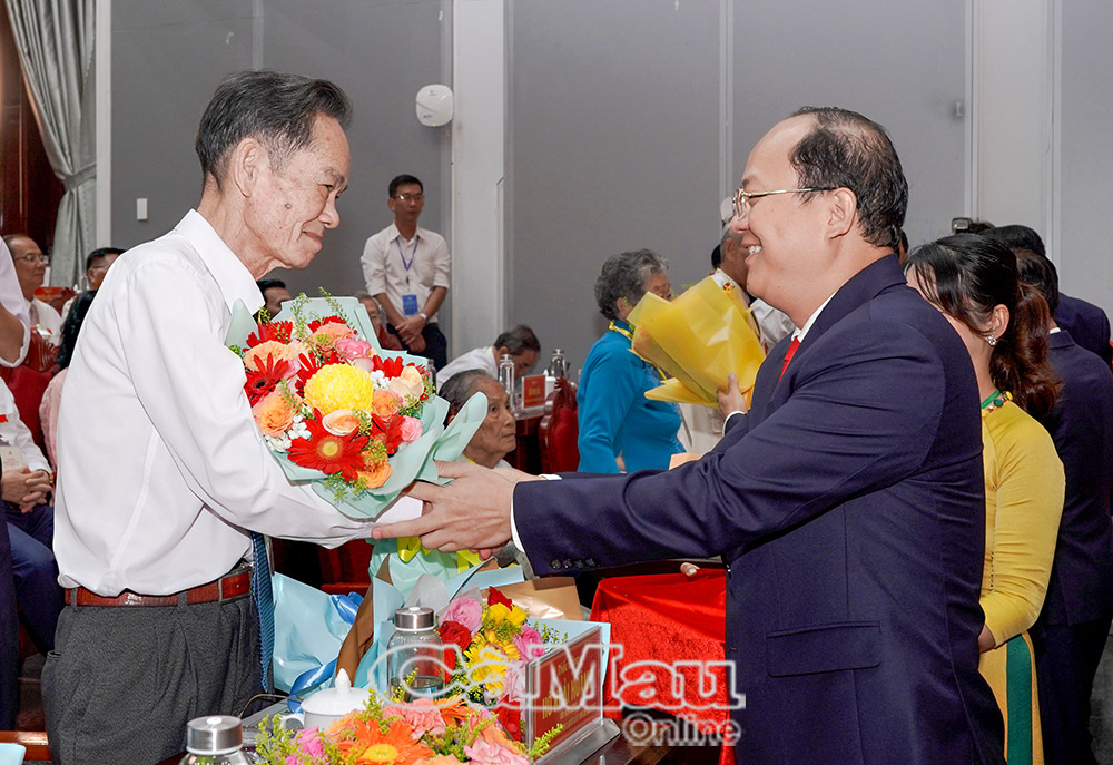 Đồng chí Trần Lưu Quang, Bí thư Trung ương Đảng, Bí thư Thành uỷ TP Hồ Chí Minh và và đồng chí Nguyễn Quang Dương, Uỷ viên Ban Chấp hành Trung ương Đảng, Phó Trưởng Ban Tổ chức Trung ương, tặng hoa chúc mừng các đồng chí được Bộ Chính trị chỉ định tham gia Ban Chấp hành Đảng bộ tỉnh Cà Mau khóa I, nhiệm kỳ 2025-2030.