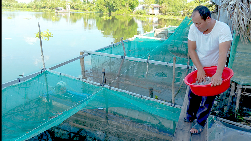 Mô hình nuôi cá bống tượng của ông Đồng Minh Chiến ở ấp sơn Trắng