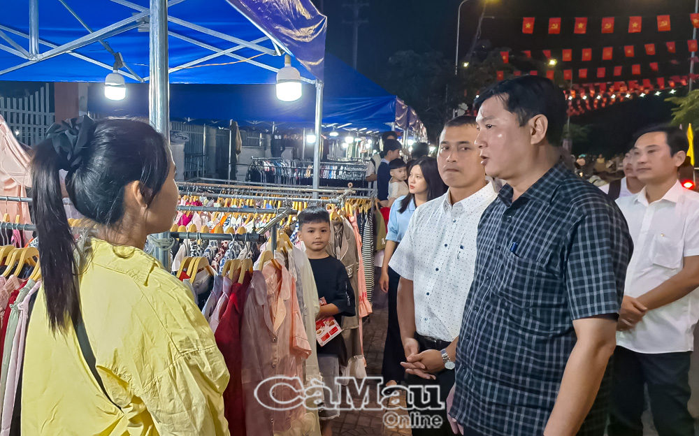 Chủ tịch UBND phường Bạc Liêu Lê Việt Xô tham quan và thăm hỏi hoạt động mua bán ngày đầu của tiểu thương.