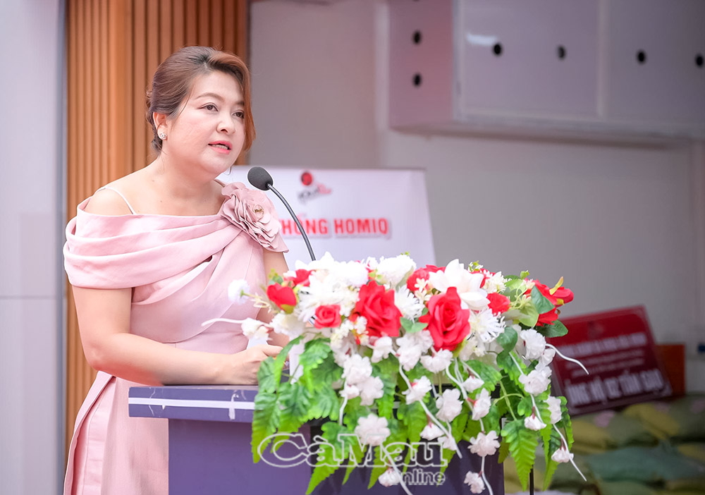 Thạc sĩ, Dược sĩ Quách Bùi Hồng Minh, Nhà sáng lập Hệ thống HomiQ, Chủ tịch HĐQT Công ty Cổ phần Dịch vụ Y tế - Phòng khám Đa khoa Hoà Minh, phát biểu tại lễ khai trương.