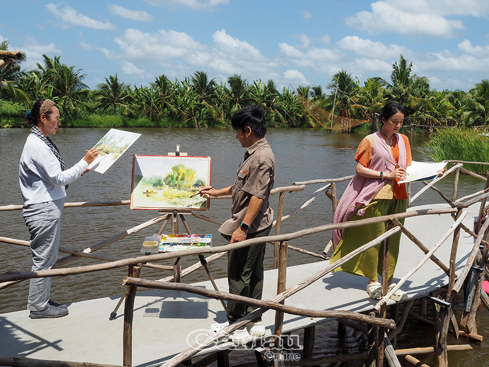 Các hoạ sĩ đến từ Hội Mỹ thuật Thành phố Hồ Chí Minh sáng tác giữa không gian xanh rừng tràm U Minh Hạ, tại Khu Du lịch sinh thái Cà Mau ECO (xã Đá Bạc).
