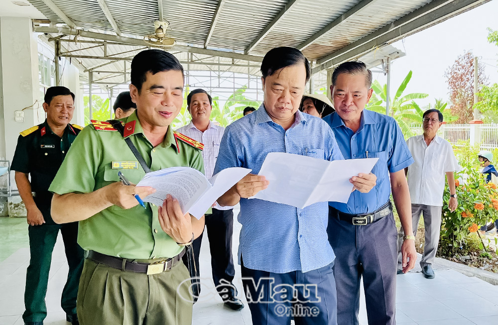 Đoàn công tác Tỉnh uỷ Cà Mau khảo sát khuôn viên trụ sở Công an xã Vĩnh Lộc.