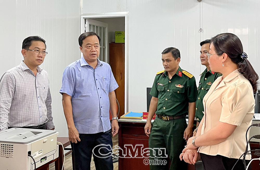 Đoàn công tác khảo sát phòng làm việc Ban Chỉ huy Quân sự xã Ninh Quới.