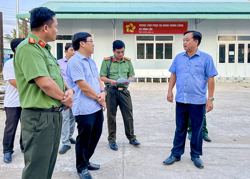 Đồng chí Huỳnh Quốc Việt, Phó Bí thư Thường trực Tỉnh uỷ, cùng đoàn công tác trao đổi với đồng chí Trần Văn Liêm, Bí thư Đảng uỷ xã Vĩnh Phước, về việc rà soát, bố trí trụ sở lực lượng vũ trang phù hợp với điều kiện cơ sở vật chất địa phương.