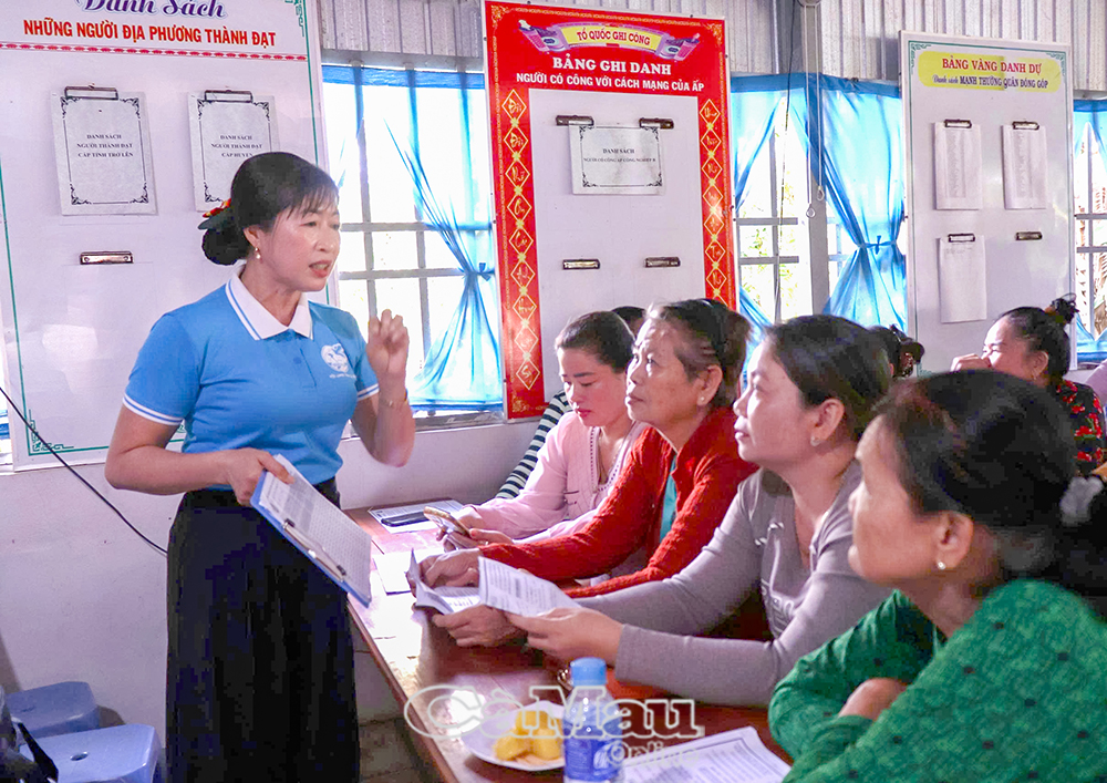 Chị Phan Cẩm Loan, Chủ tịch Hội LHPN xã Khánh Hưng tích cực tuyên truyền các kiến thức về bình đẳng giới, chính sách an sinh xã hội cho hội viên.