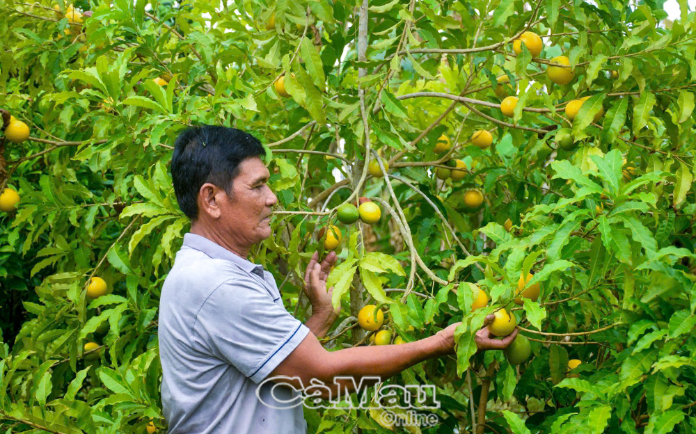 Ông Danh Mạnh Khuynh, nông dân ấp Nhà Máy B, tận dụng ao xung quanh nhà nuôi cá, ốc và trồng thêm vú sữa hoàng kim để tăng thu nhập.