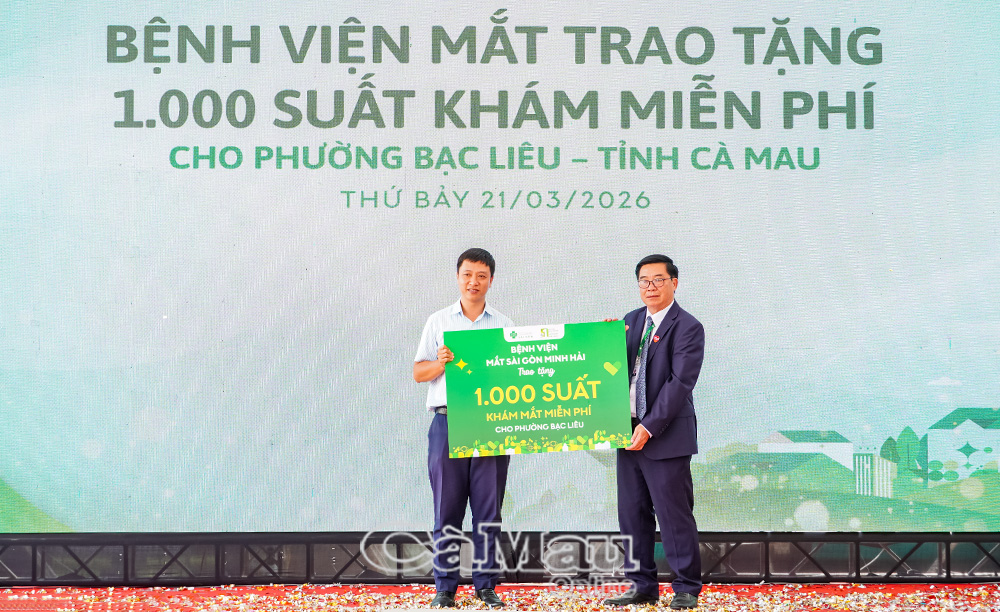 Nhân dịp khánh thành, ông Diệp Văn Hon, Giám đốc điều hành Bệnh viện Mắt Sài Gòn Minh Hải, trao tặng 1.000 suất khám mắt miễn phí cho người dân phường Bạc Liêu.