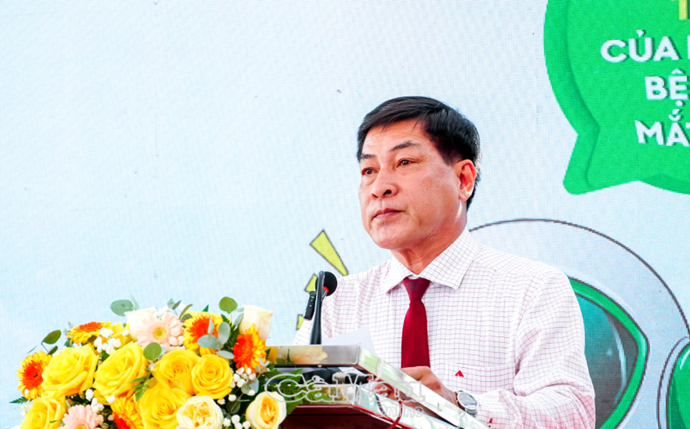 Bác sĩ CK1 Diệp Văn Hon, Giám đốc điều hành Bệnh viện Mắt Sài Gòn Minh Hải, phát biểu tại lễ khánh thành.